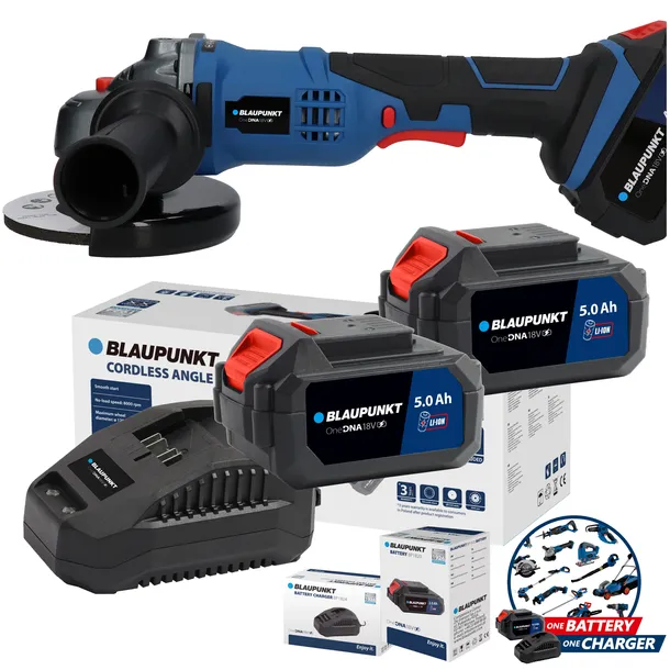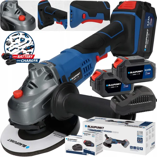 Model CG5010 jest kompatybilny z systemem OneDNA 18 V – do działania wymaga akumulatora litowo-jonowego BP1820 (2Ah) , BP1840 (4Ah) lub BP1850 (5 Ah) który możesz stosować także z innymi narzędziami BLAUPUNKT z tej serii.